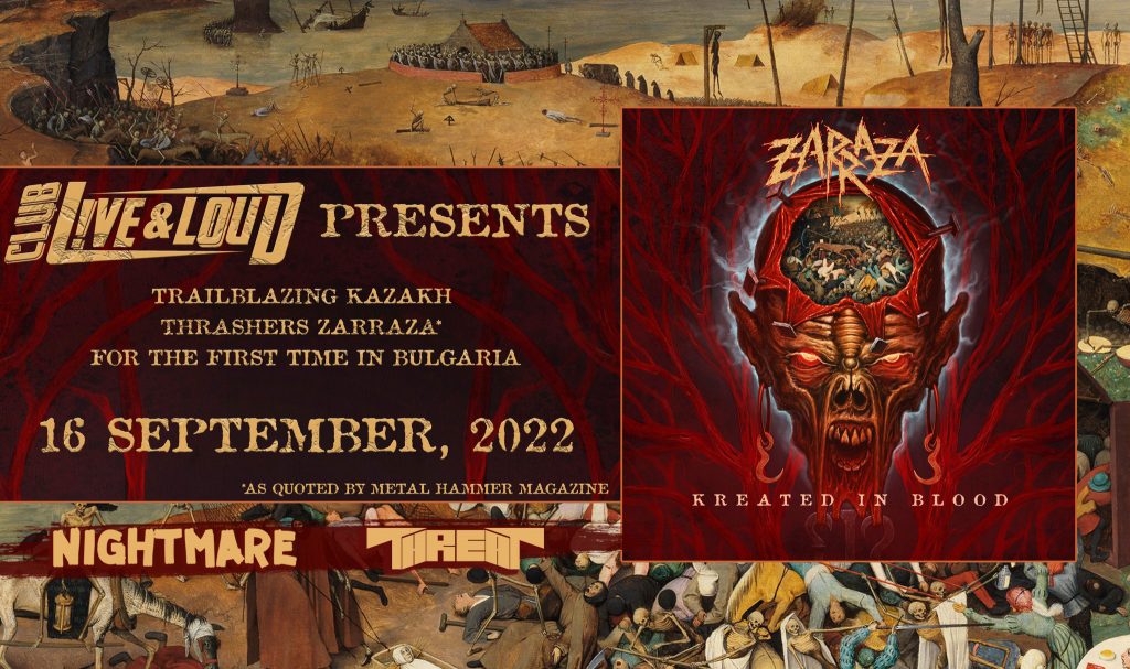 Friday, September 16, club Live&Loud will host the first Bulgarian show of the Kazakh thrashers ZARRAZA. First on the stage will be a new Bulgarian thrash metal band – THREAT.